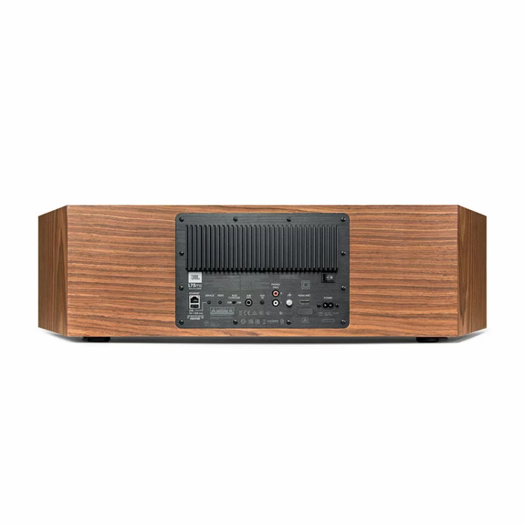 اسپیکر بالا رده ی شرکت جی بی ال مدل JBL L75ms ساخته شده از چوب گردوی طبیعی و دست ساز با مجموع توان خروجی ۳۵۰ وات واقعی با قابلیت های اپل ایرپلی , گوگل کروم کست , HDMI ARC و بلوتوث مناسب برای علاقه مندان به صدای اکوستیک و با کیفیت